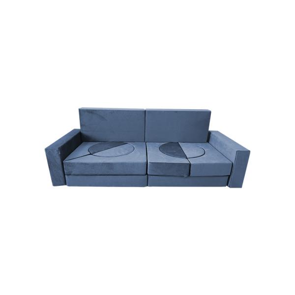 Play couch is made up of 10 modular foam pieces, made entirely from CertiPUR-US® certified polyurethane foam and covered in washable microsuede fabric.